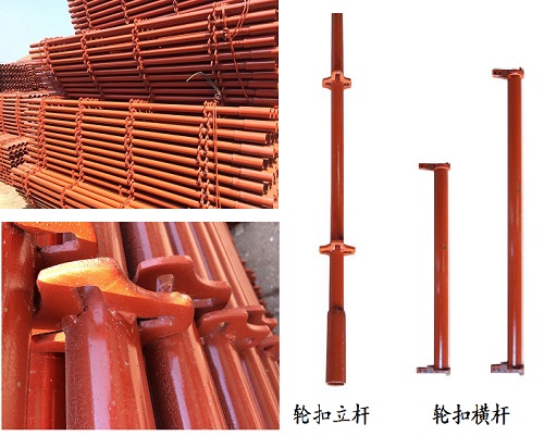 3、橫桿選擇 橫桿均為標準桿件,其桿件長度符合300mm模數(shù),故在進行架體立桿間距設計時應按照所提供橫桿長度進行計算,故立桿間距設置無扣件式鋼管腳手架靈活。