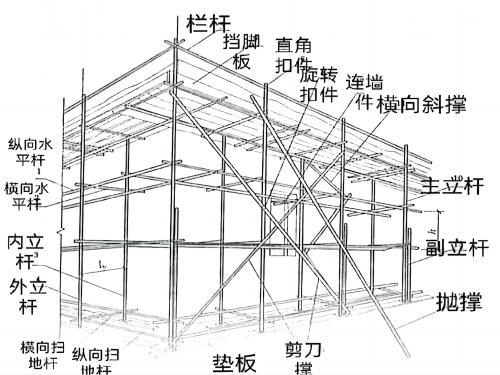 鋼管程度拉桿將其扣住??v橫向垂直鉸剪撐按間隔小于6m安設(shè)。