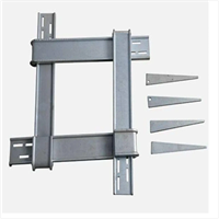(1)工藝簡單,操作便利。方柱扣加固件是對應(yīng)固定方柱模板的專用定制型配套卡箍,外形有對應(yīng)四個彎頭單片鍍鋅卡板組成,卡板一端設(shè)置為折彎結(jié)構(gòu),每條卡板上沿長度方向設(shè)有若干相同間隔的固定孔,楔形固定銷穿過通孔和固定孔將限位套和卡板固定,形成安裝拆卸方便的方柱模板加固件。